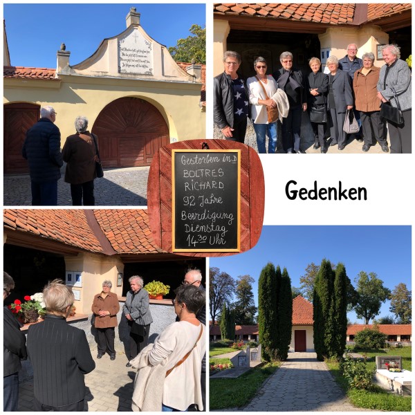 5. Oktober – 14:30 Uhr treffen sich ein paar Neustädter auf dem Friedhof um Richard Boltres (Lieser Rick), einem Vetter von Heinz, zu gedenken, der zu jener Stunde in Deutschland zur letzten Ruhe getragen wird. Als die Heimatglocken von Neustadt für den Verstorbenen läuten, ist es für alle Anwesenden ein sehr ergreifender Moment. Auch beim anschließenden gemeinsamen Rundgang über den Neustädter Friedhof werden mit den Anwesenden Erinnerungen ausgetauscht.